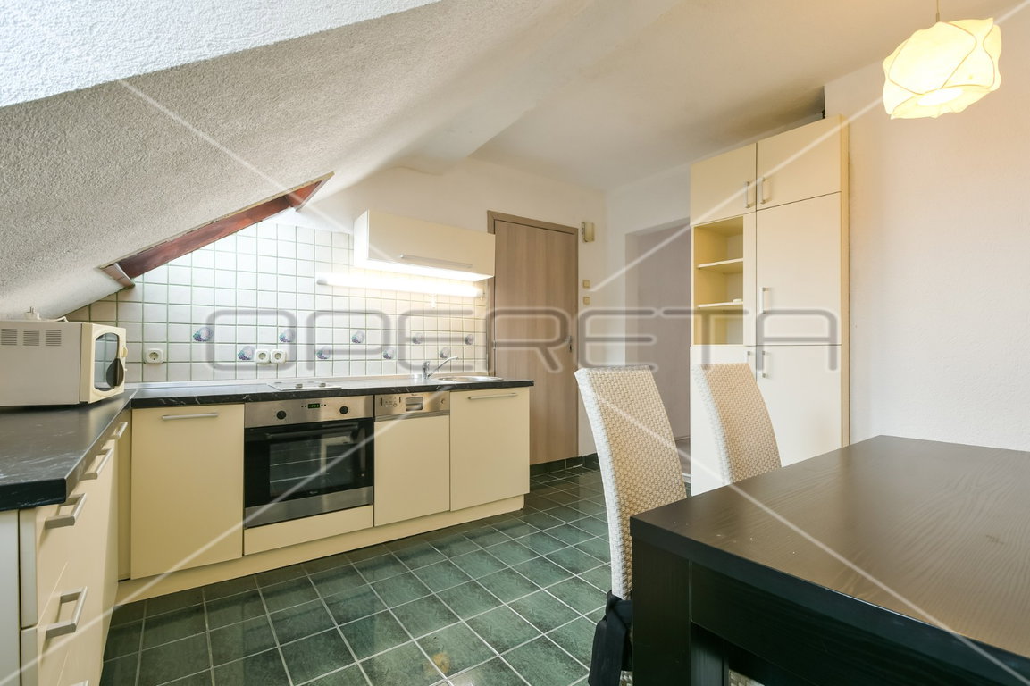 In the very heart of the center, close to Cvjetni trg, there is a 2-room apartment in the attic with two rooms, a separate kitchen and dining room, a bathroom, a separate toilet and a hallway. The apartment is furnished, in a quiet environment, since the building is tucked away in the yard, and is great for all lovers of the center and the life it offers.